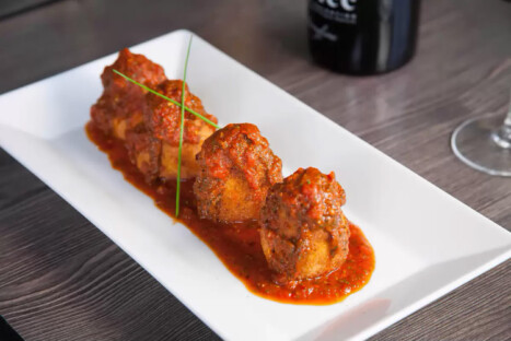 Sfere Di Parmigiano con Schiuma de Basilico e Salsa Arrabbiata Esferas de parmigiano fritas con espuma de albahaca (6pzas). | $ 285 | |